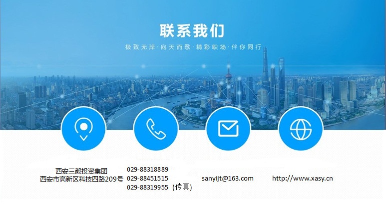 公司名稱:西安三毅投資集團(tuán) 公司地址:西安市高新技術(shù)開(kāi)發(fā)產(chǎn)業(yè)區(qū)科技四路209號(hào) 郵政編碼:710065 公司電話:029-88318889 029-88451515
